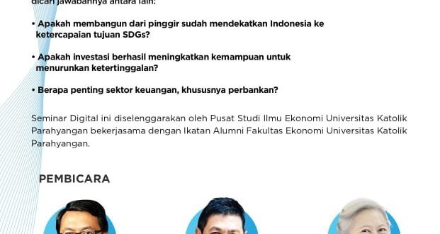Seminar Digital merupakan ajang diskusi terbuka mengenai isu ekonomi yang berkaitan dengan kebijakan dan kinerja pembangunan ekonomi di berbagai wilayah di Indonesia selama satu dekade terakhir. Pusat Studi Ilmu Ekonomi bersama Ikatan Alumni Fakultas Ekonomi UNPAR mengadakan Seminar Digital 2020 mengambil tema “Pemerataan dari Pinggir” dengan pokok bahasan strategi pembangunan …