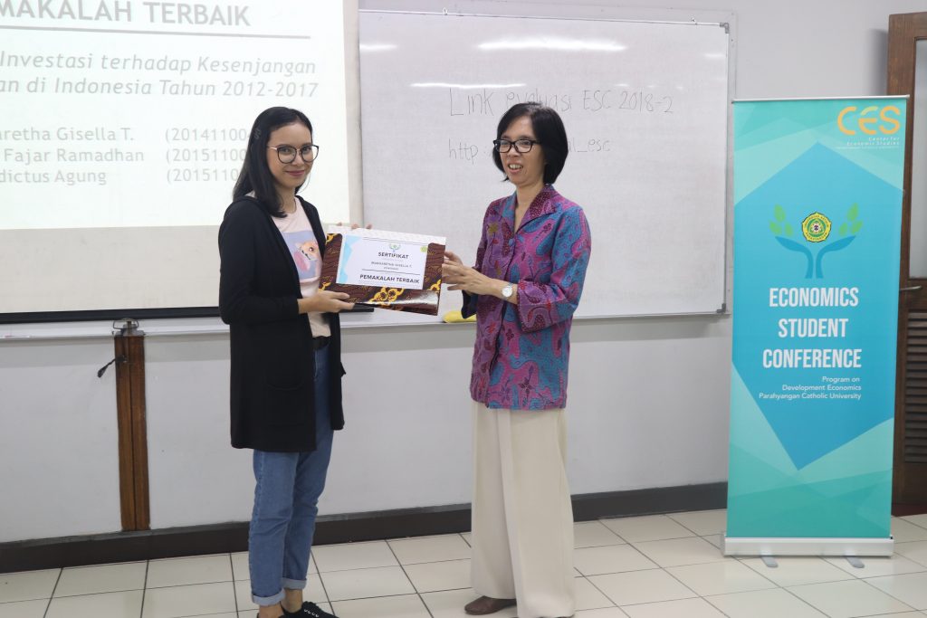 Economic Student Conference diselenggarakan secara rutin setiap semester sejak tahun akademik 2013/2014 sebagai sarana latihan bagi mahasiswa untuk membangun keterampilan menyampaikan dan mendiskusikan hasil penelitian / kajian ilmiah di forum terbuka yang diselenggarakan dengan tatacara mengikuti praktik konferensi internasional di bidang ekonomi. Dalam kegiatan ini, mahasiswa berkesempatan untuk mendapatkan pengalaman langsung suasana akademik dalam suatu forum seminar. Kegiatan ini menuntut mereka untuk dapat mempresentasikan makalah secara baik dan menanggapi berbagai komentar dan pertanyaan yang disampaikan oleh para peserta yang hadir secara baik pula. Economic Student Conference melibatkan civitas akademika Jurusan Ilmu Ekonomi dan alumni Program Sarjana Ekonomi Pembangunan UNPAR.