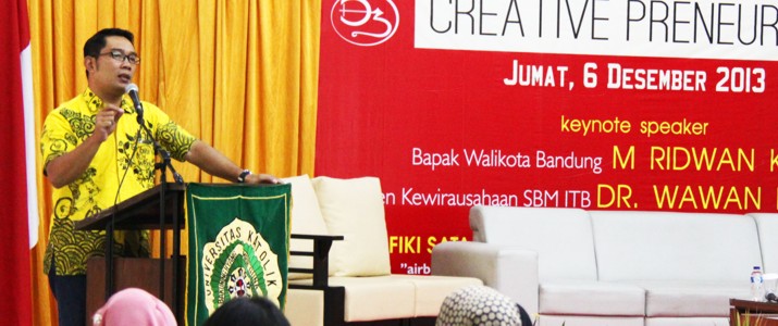 Dengan melihat potensi yang besar dalam industri kreatif di Bandung, Bertempat di gedung Aula Pasca Sarjana UNPAR, pada tanggal 6 Desember 2013, Program Studi D III Manajemen Perusahaan UNPAR melaksanakan Seminar yang mengambil tema “How To Become A Young & Creative Preneur”. Acara tersebut dibuka oleh Ida Nuraida, SE, MM selaku ketua Program Studi D III Manajemen Perusahaan UNPAR dilanjutkan dengan sambutan-sambutan dari Dr. Elizabeth Tiur Manurung, M.Si.,Ak, selaku Dekan Fakultas Ekonomi UNPAR, Prof. Robertus Wahyudi Triweko, Ph.D. selaku Rektor Universitas Katolik Parahyangan dan kemudian dilanjutkan penyampaian Keynote Speech oleh Walikota Bandung, Ridwal Kamil.